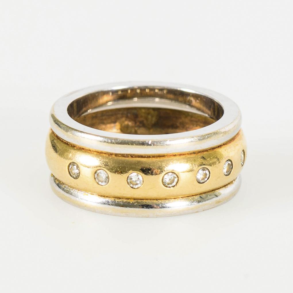 Marked yellow gold/white gold 585. Ring size 54. 9.9 g.