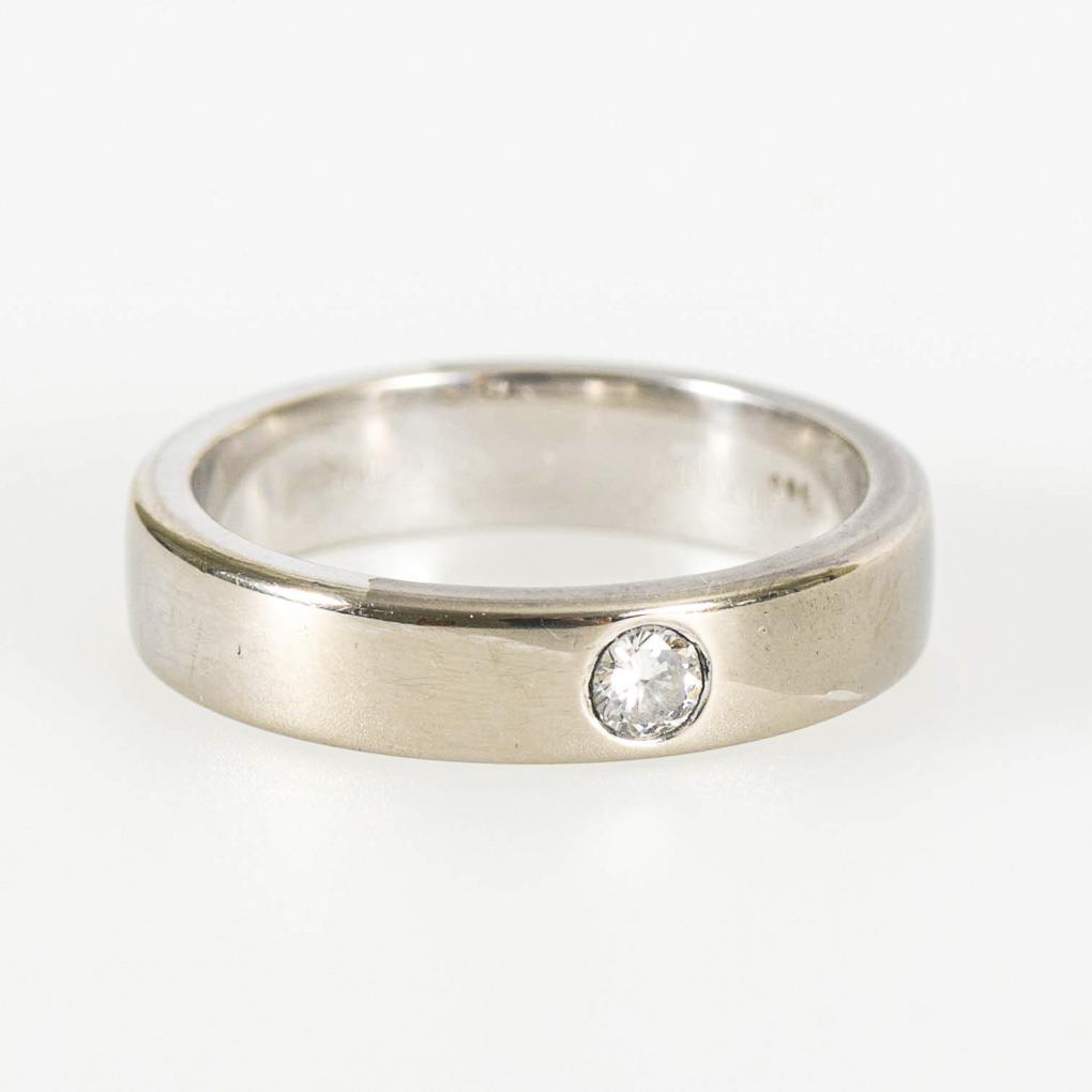 Simple band ring with brilliant-cut diamond.