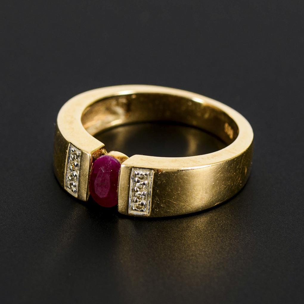 Band ring with ruby and diamonds.