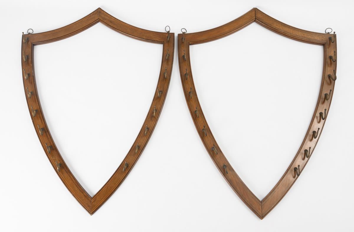 Pair of armorial wall holders for collections of canes and brooms.