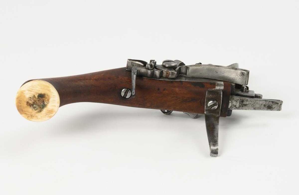 Pistol lighter with percussion lock of a baroque pistol. Shaft reworked, with defect at the front, leg polished.