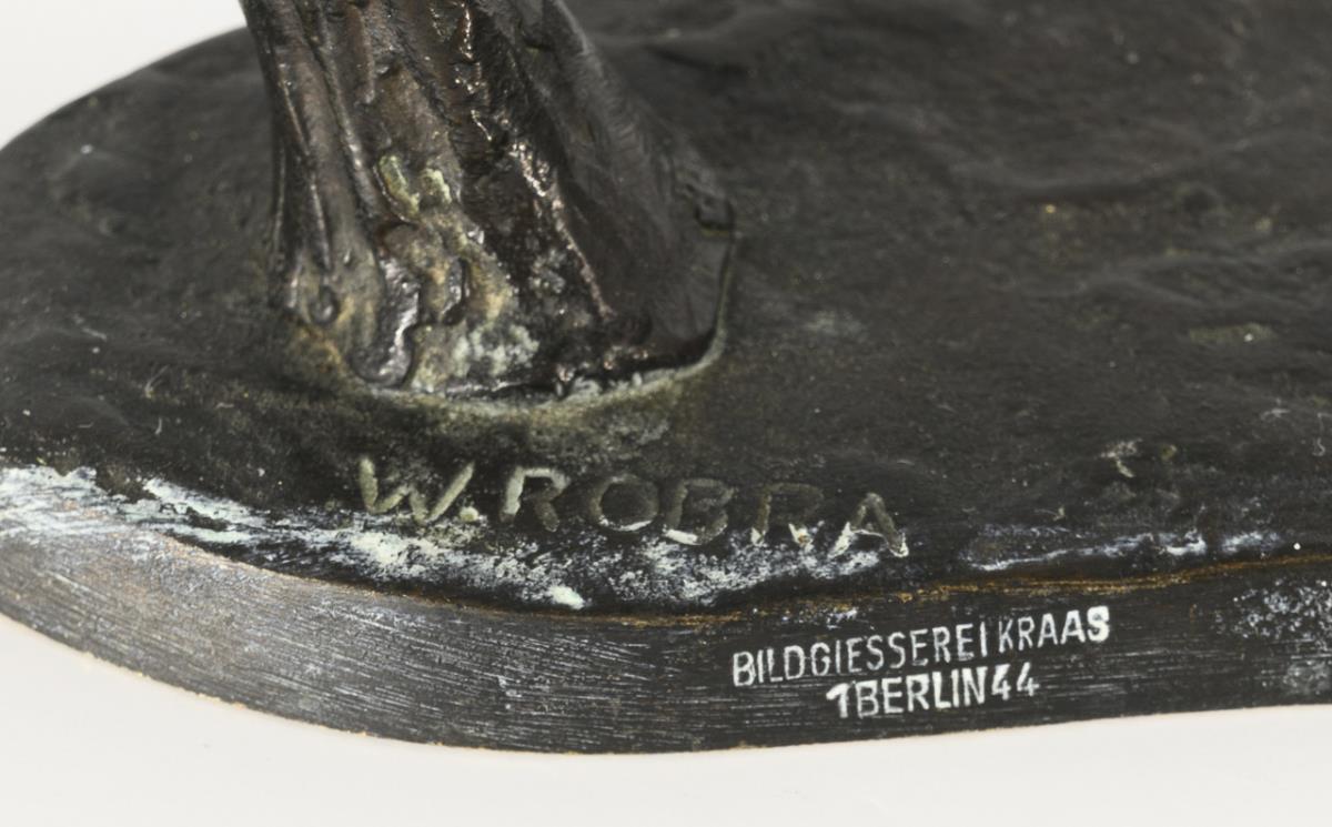 Bronze patinated. Inscribed, foundry mark "Bildgiesserei Kraas 1 Berlin 44". 17.5 x 24.5 x 11 cm.