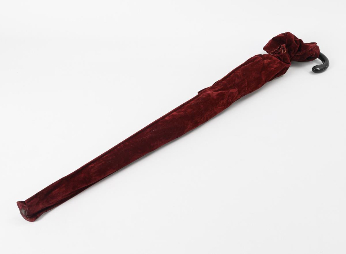 Silk or viscose printed in color, velvet cover, brass. L shade 92 cm, Ø 107 cm, cloth 98 x 93 cm.