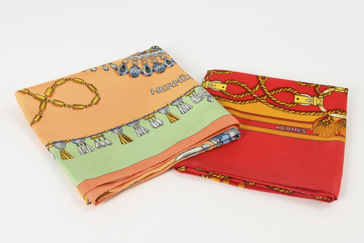 2 fashionable designer scarves. Hermès Paris.
