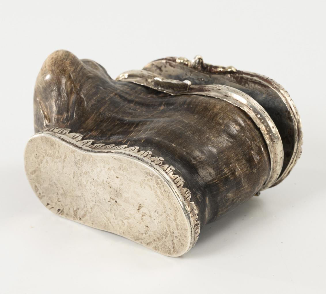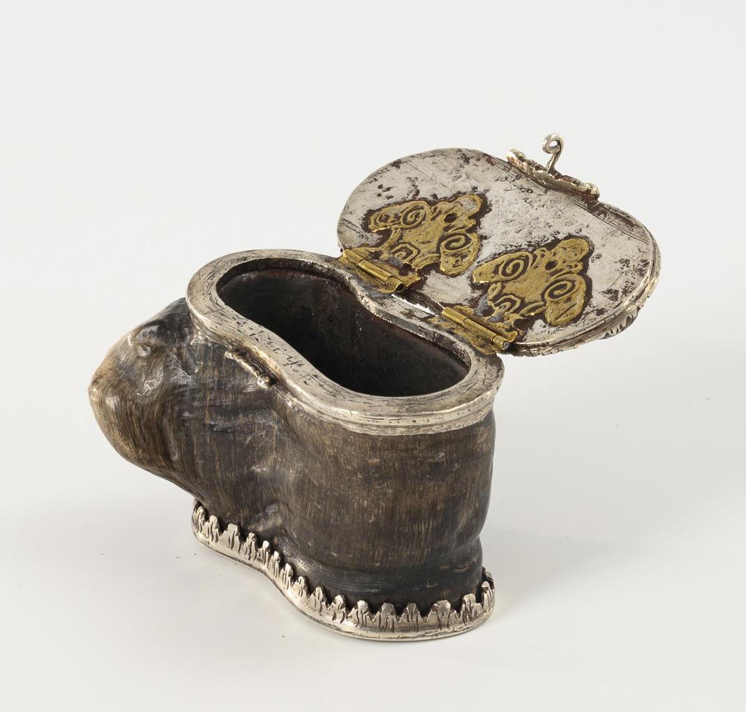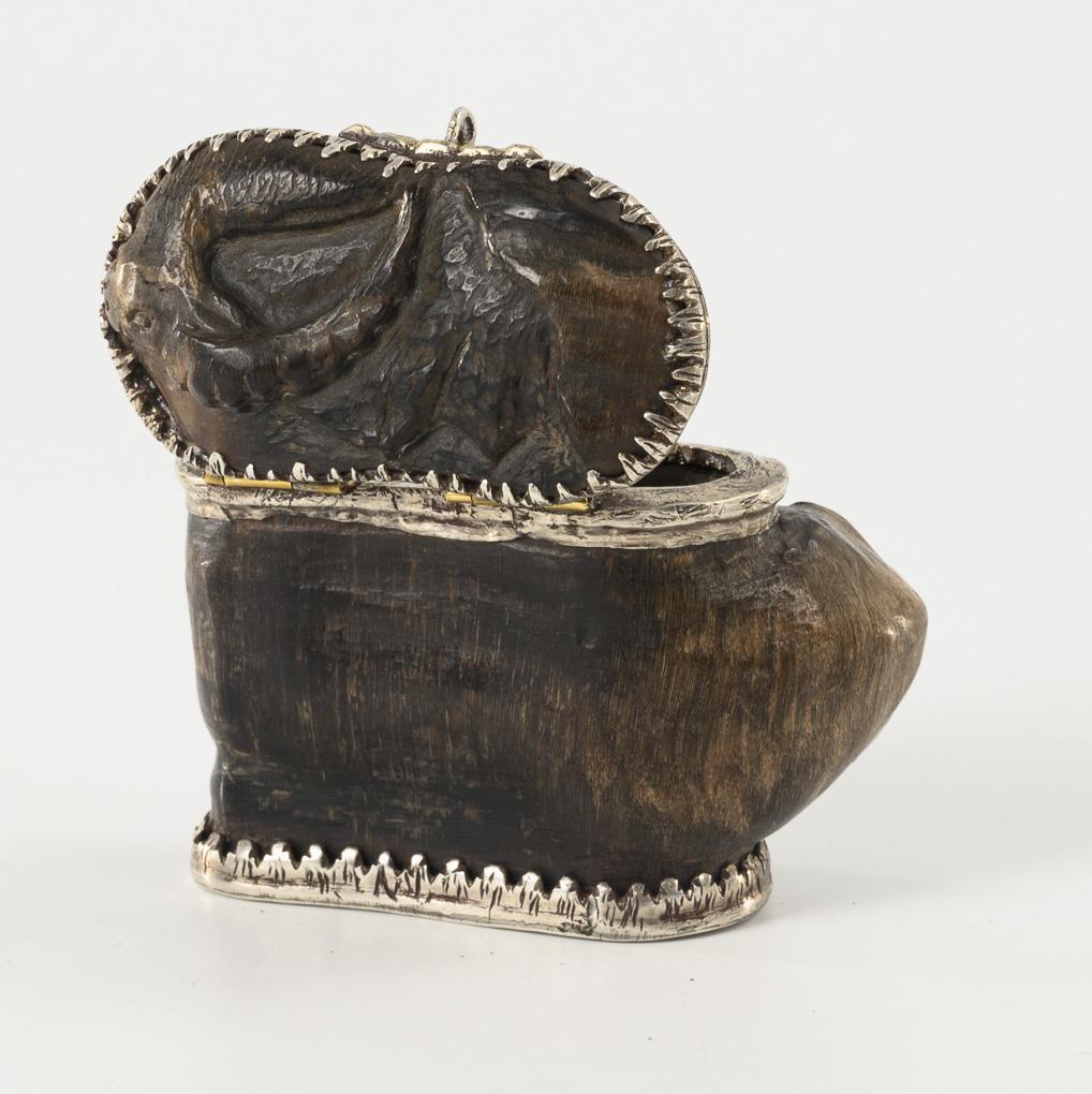 Ibex horn, silver tested, brass hinges. 5 x 7 x 4 cm.