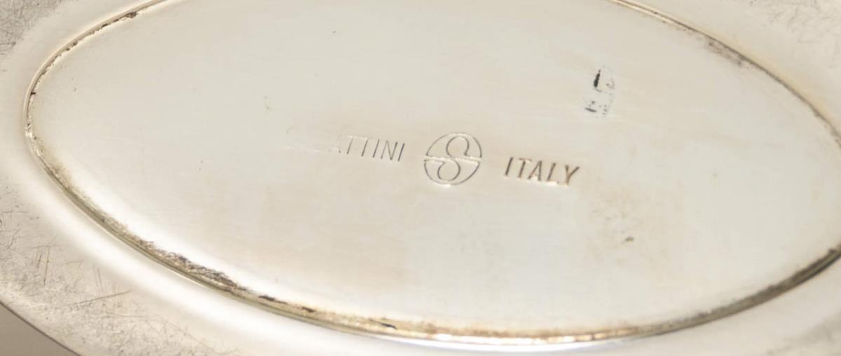 Slim, oval vases and candlesticks. Minimally dented at the base.
