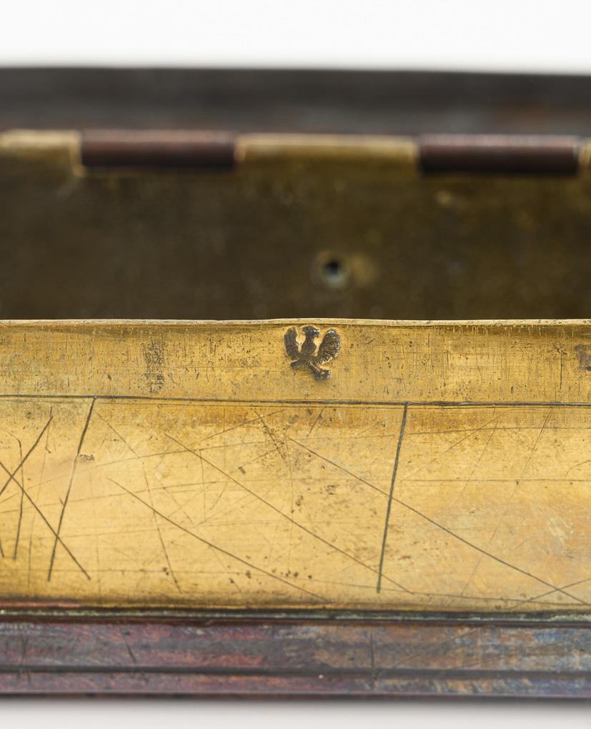 Marked on the lid, eagle(?) hallmark on the wall. 1750/60s. (1716 - 1761)