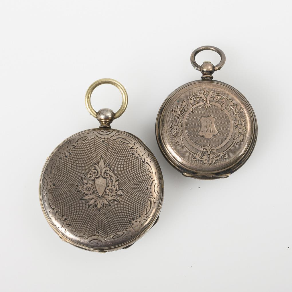 2 silver key pocket watches.