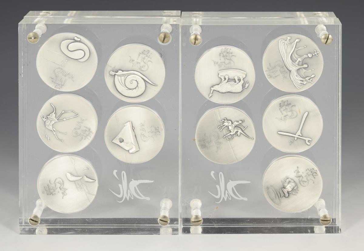 Salvador Dalí: 10 silver medals "The Ten Commandments" in 2 frames.
