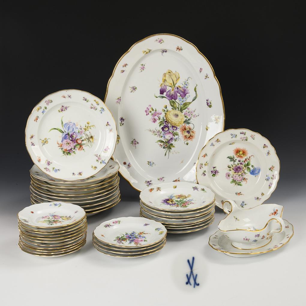 36 pieces of a dinner service with flower and insect painting. Meissen.