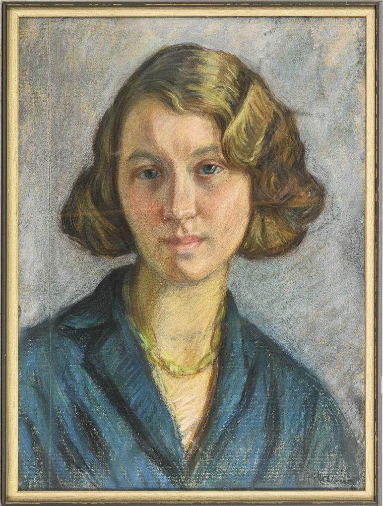 Pastel. Indistinctly signed lower right, titled "Elisabeth Löwit" verso. 20th century