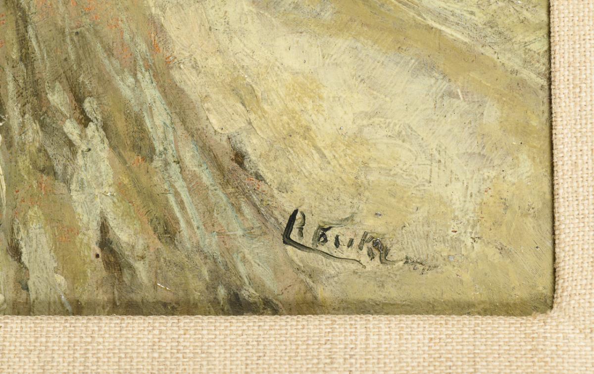 Oil/wood. Signed lower right.