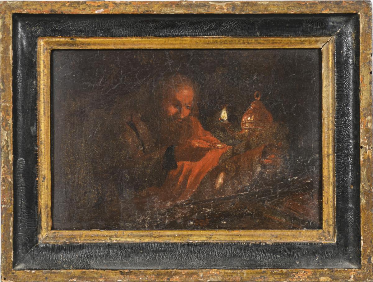Oil/paper/cardboard. Unsigned. Probably 18th century