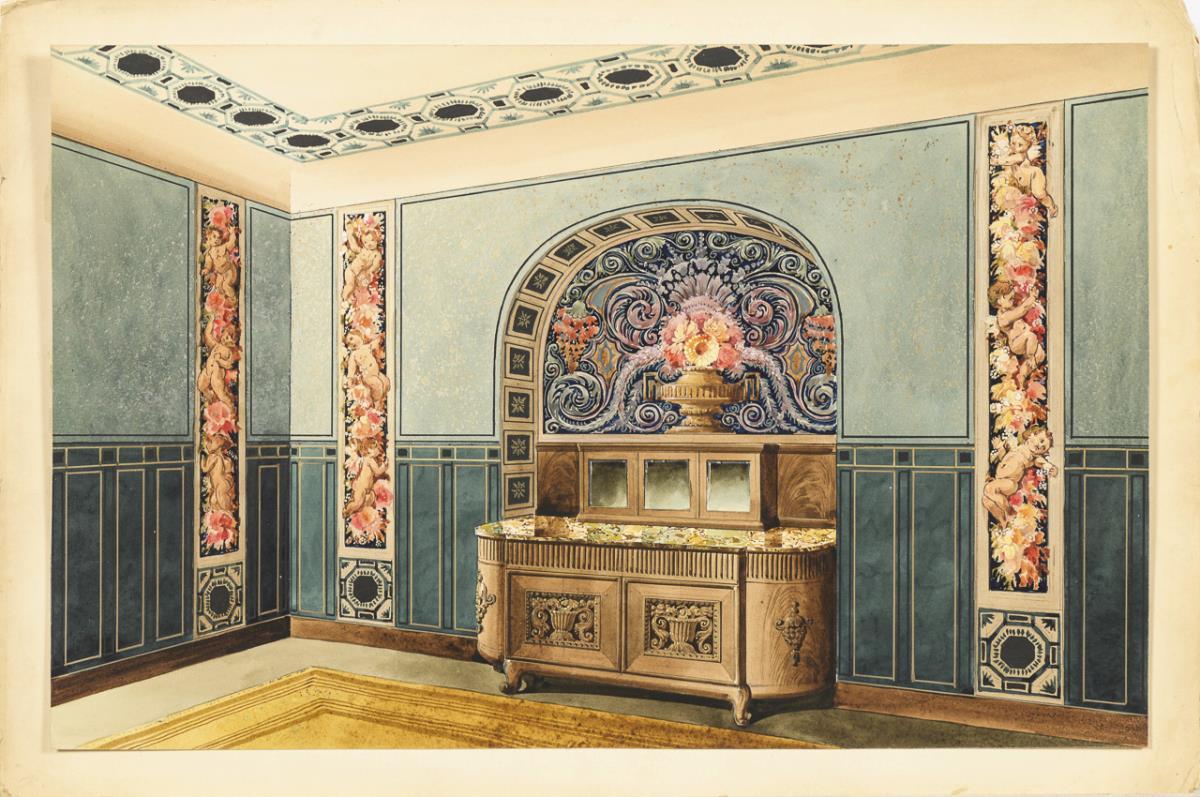 Three views of stately interiors