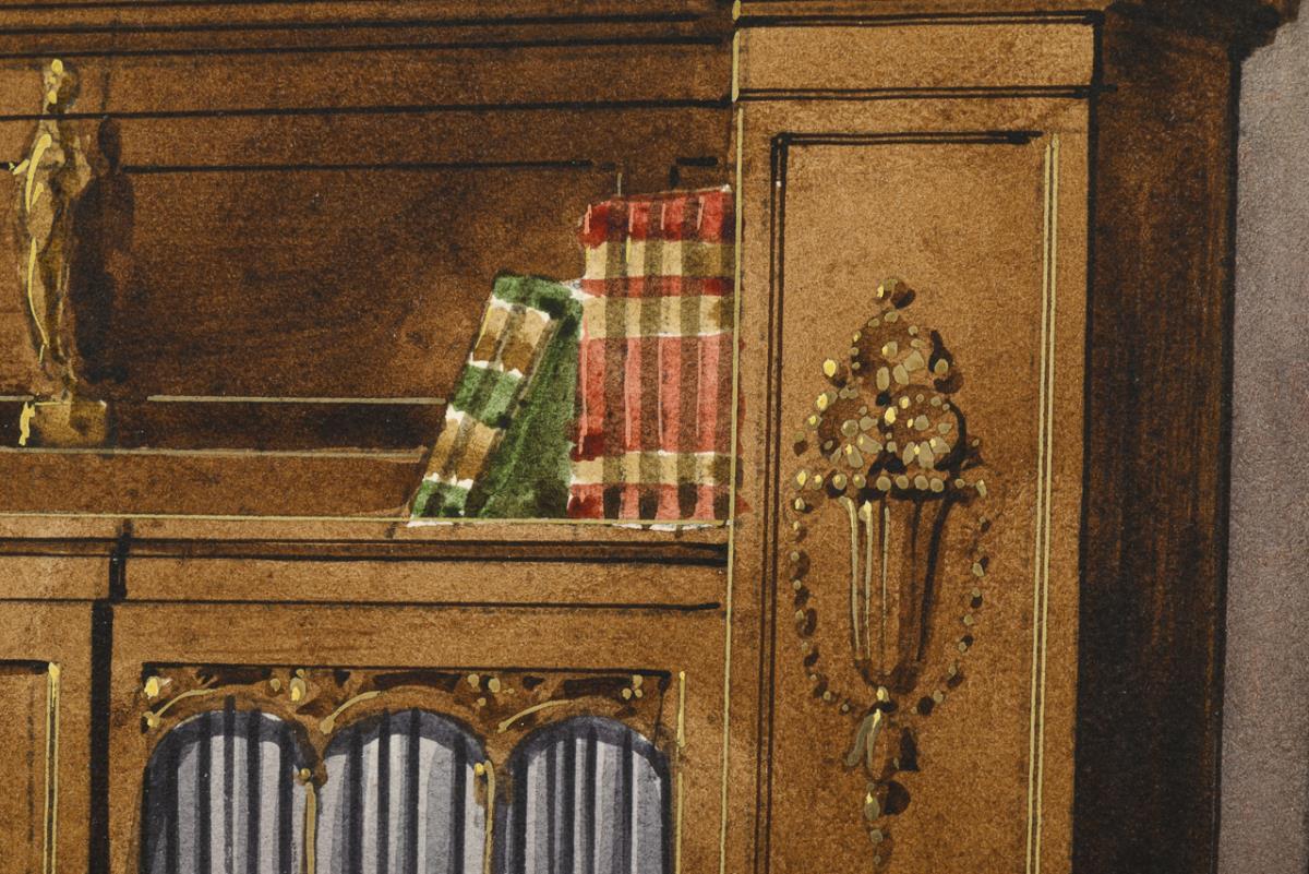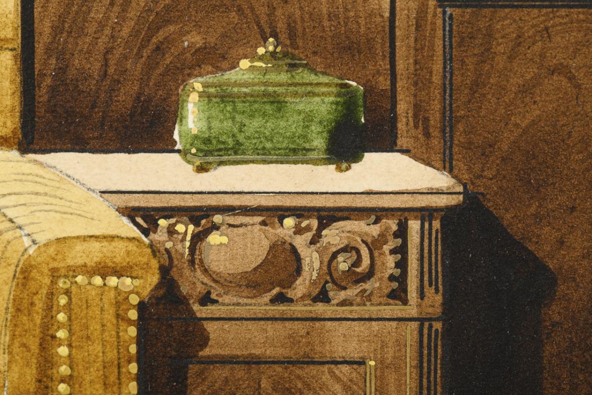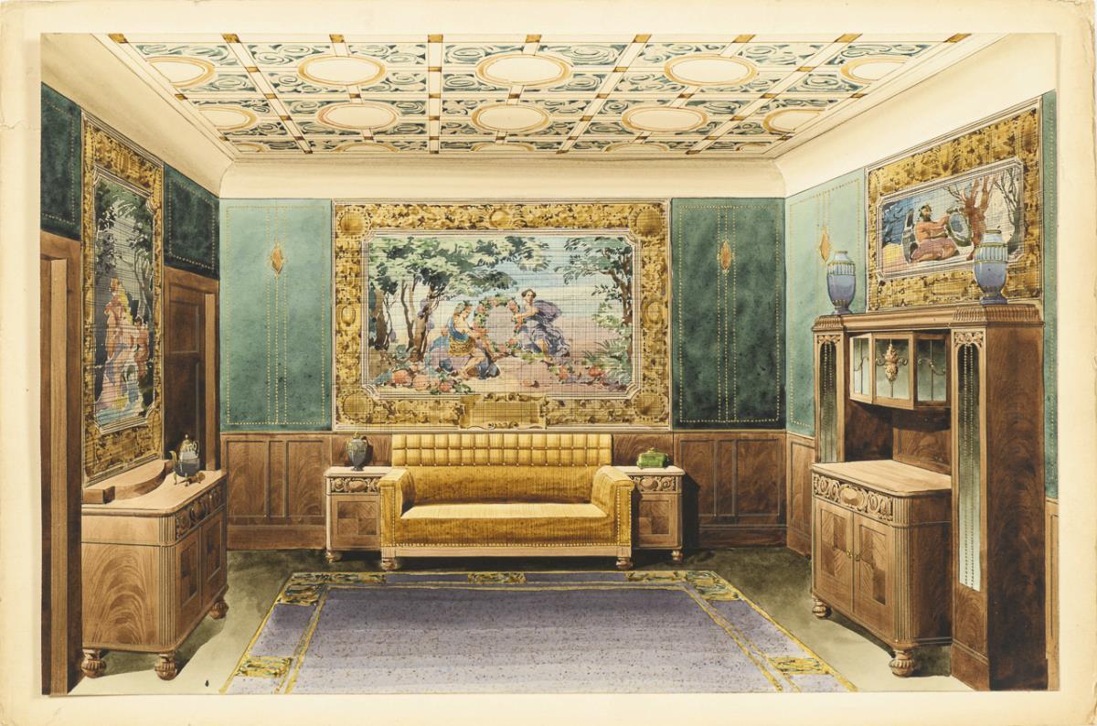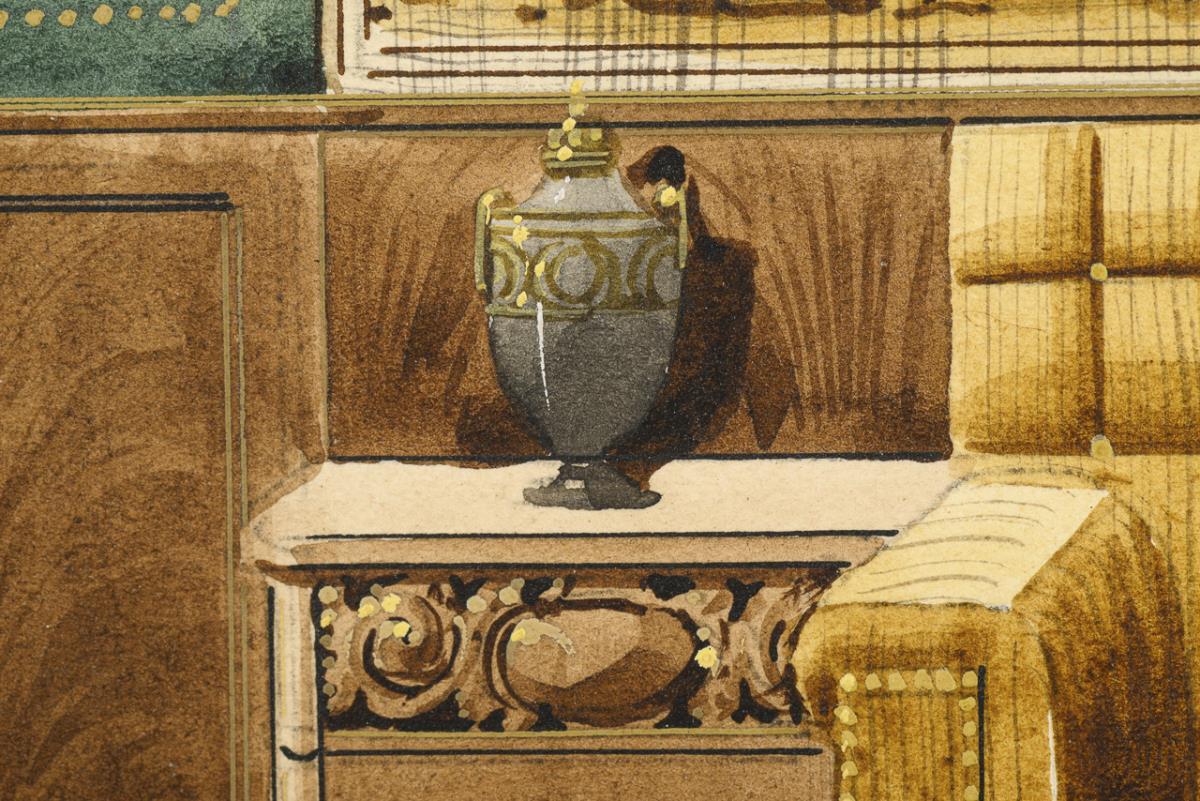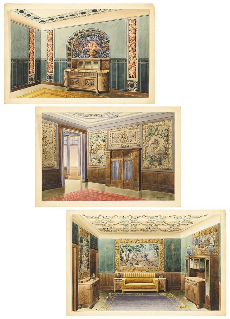 Three views of stately interiors