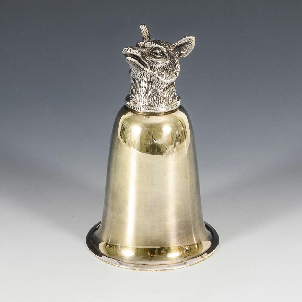 Smooth cup with sculpted animal head, gold-colored interior.