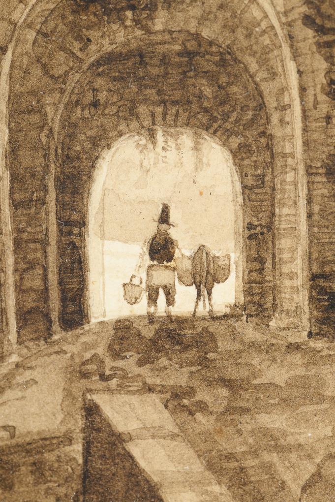 Sepia watercolor. Unsigned. 1st half of the 19th century