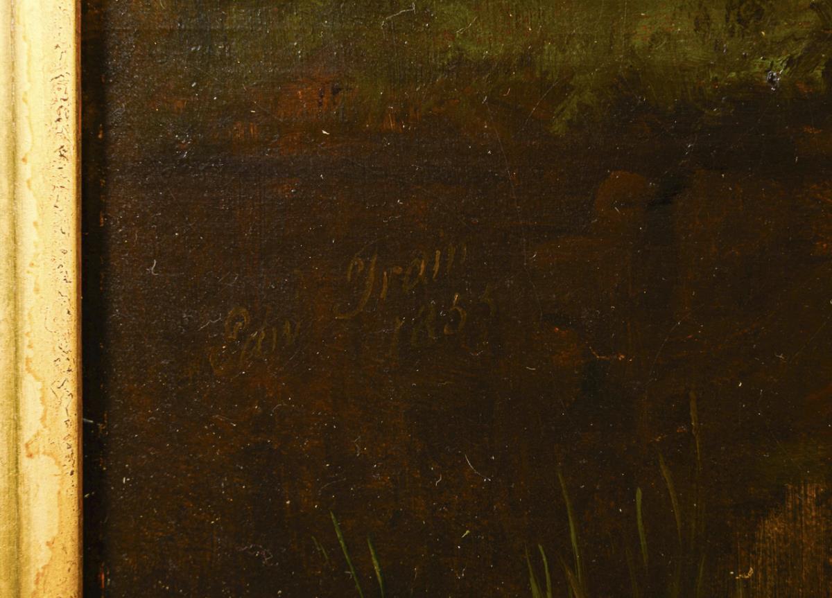 61 x 50.5 cm. Framed : 81 x 70.5 cm (gold stucco frame).