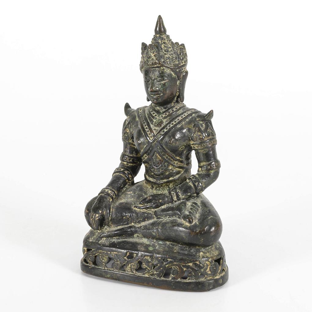 Figure seated on an openwork plinth, with the gesture of touching the earth.