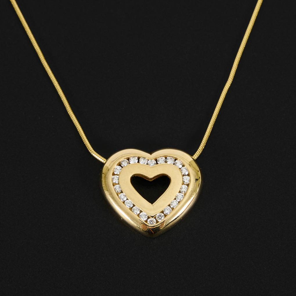 Pendant with 22 small, set diamonds on a necklace with lobster clasp.