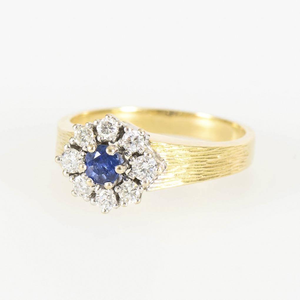 Ring with sapphire with diamonds.