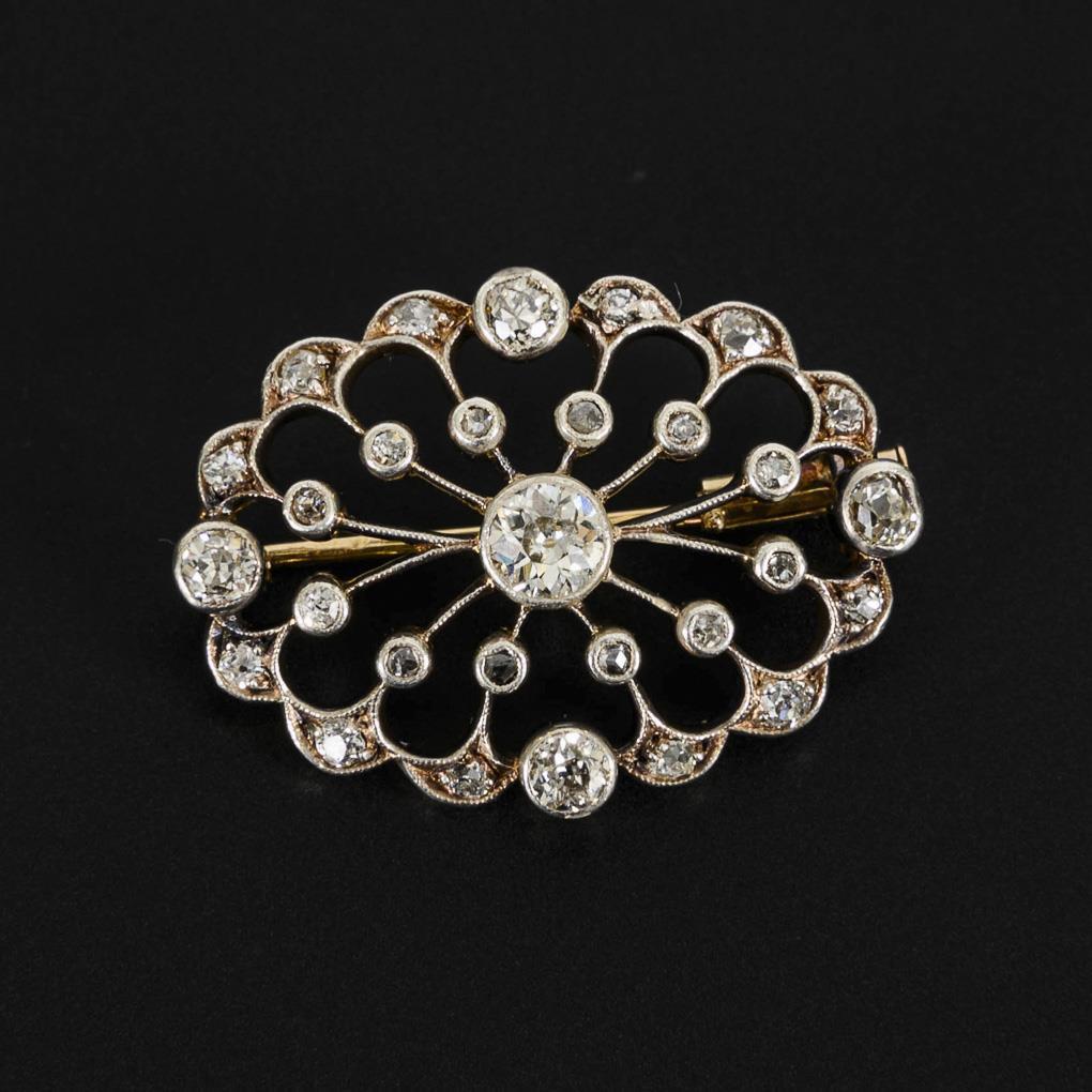 Art Nouveau brooch with old-cut diamonds and diamond roses.