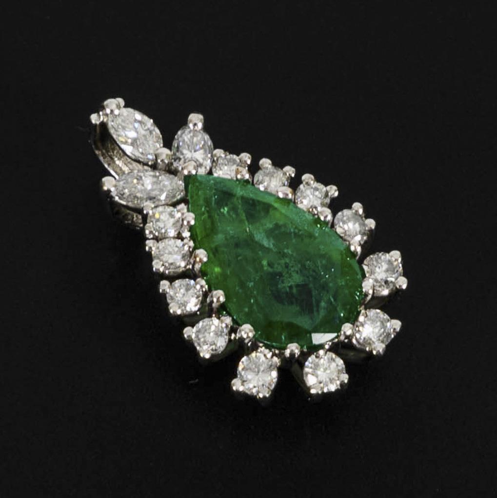 Pendant with emerald, brilliant-cut diamonds and diamonds.