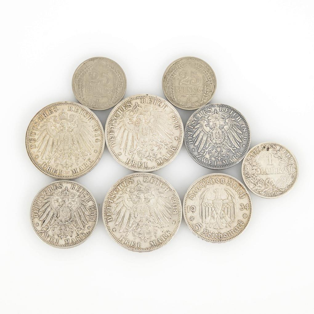 9 coins German Reich.