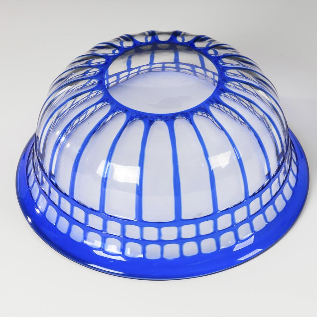 Colorless, blue overlaid glass. H 7.5 cm, Ø 19 cm.