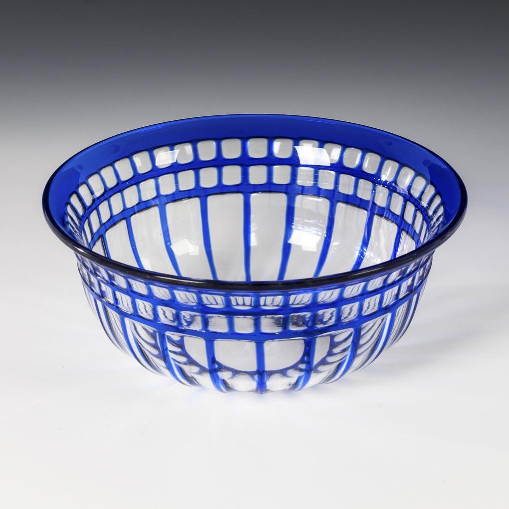 Colorless, blue overlaid glass. H 7.5 cm, Ø 19 cm.