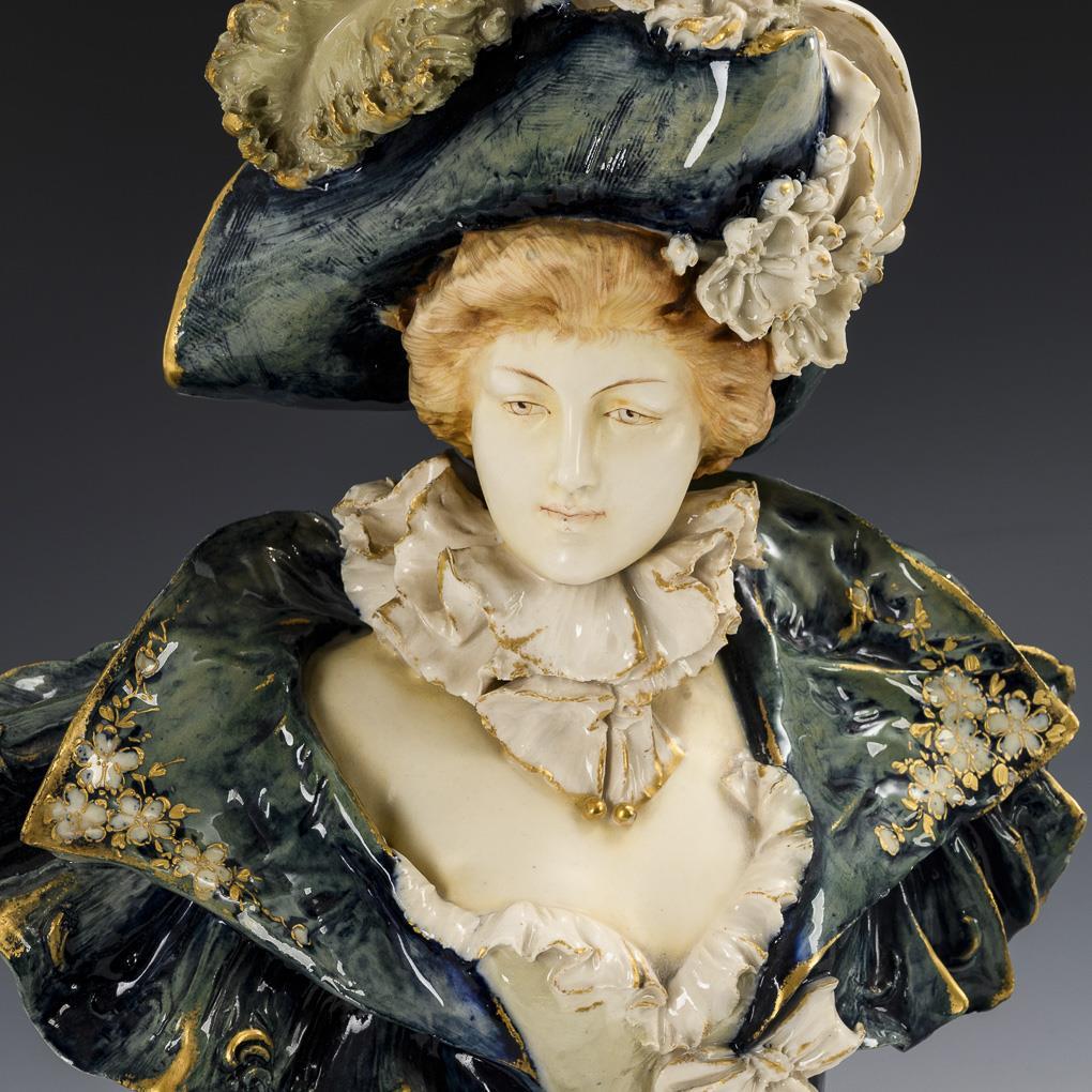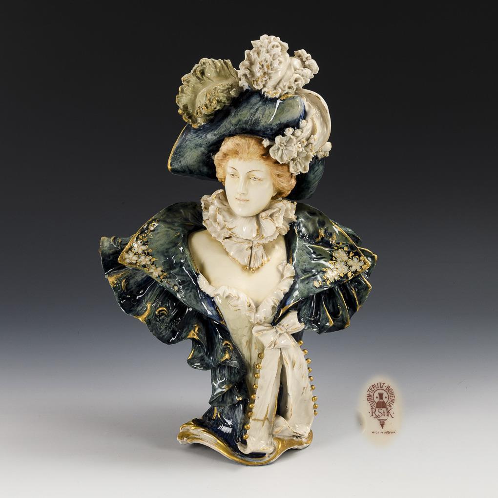 Art Nouveau bust of a fashionable lady with feathered hat. Riessner, Stellmacher & Kessel.