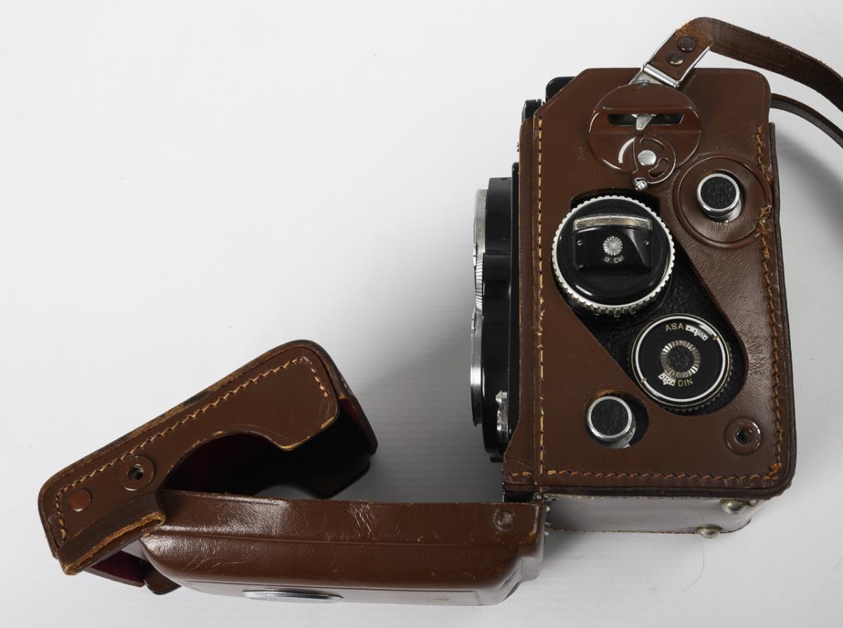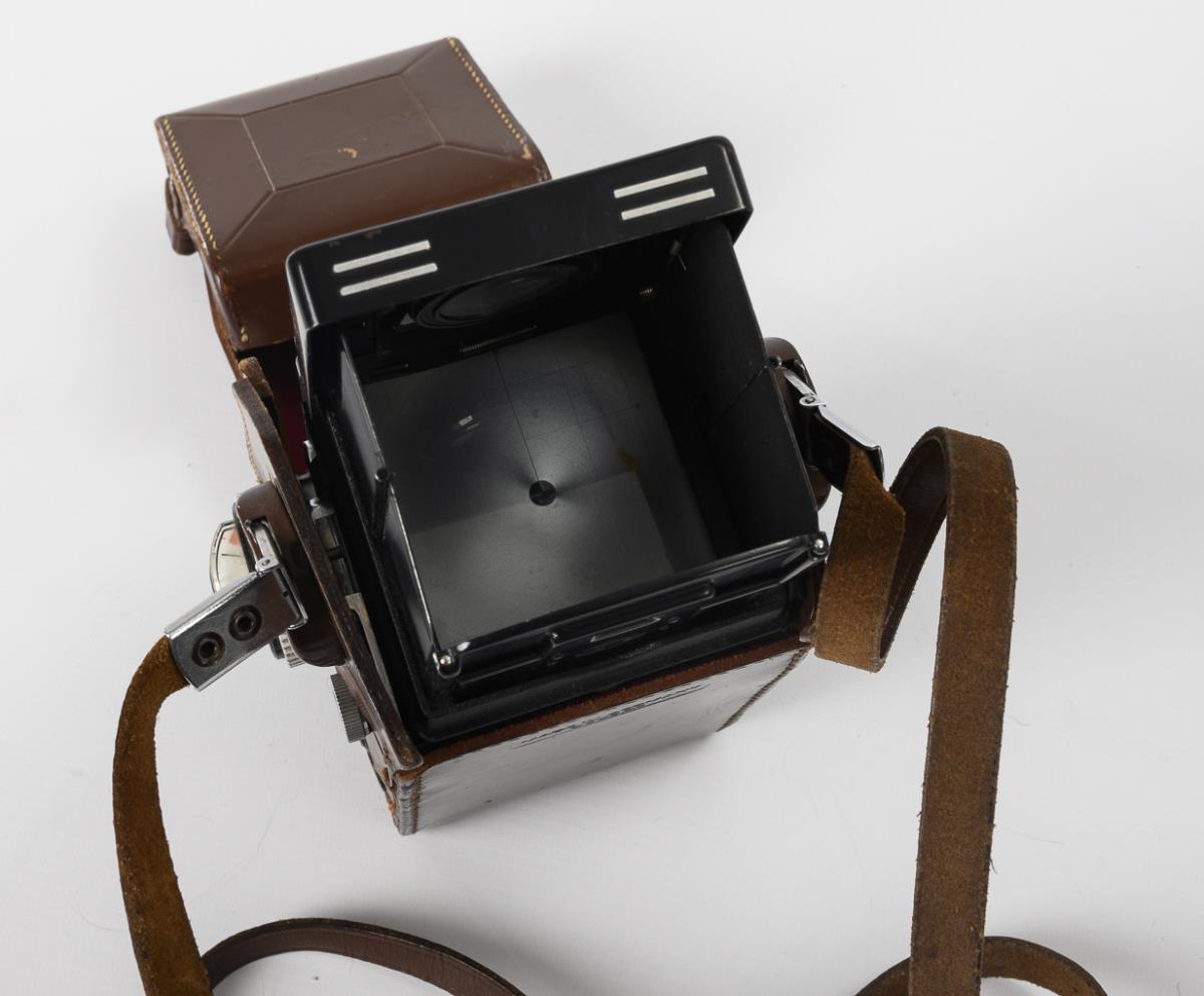 "Rolleiflex" with integrated light meter in original leather case. Franke & Heidecke Braunschweig.