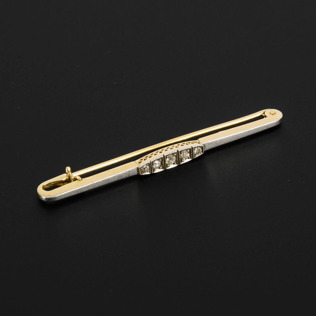 Bar pin with 4 small, embedded old-cut stones. Hook clasp with tilt protection.