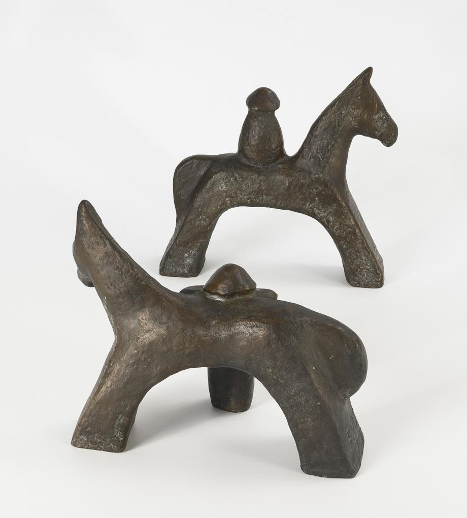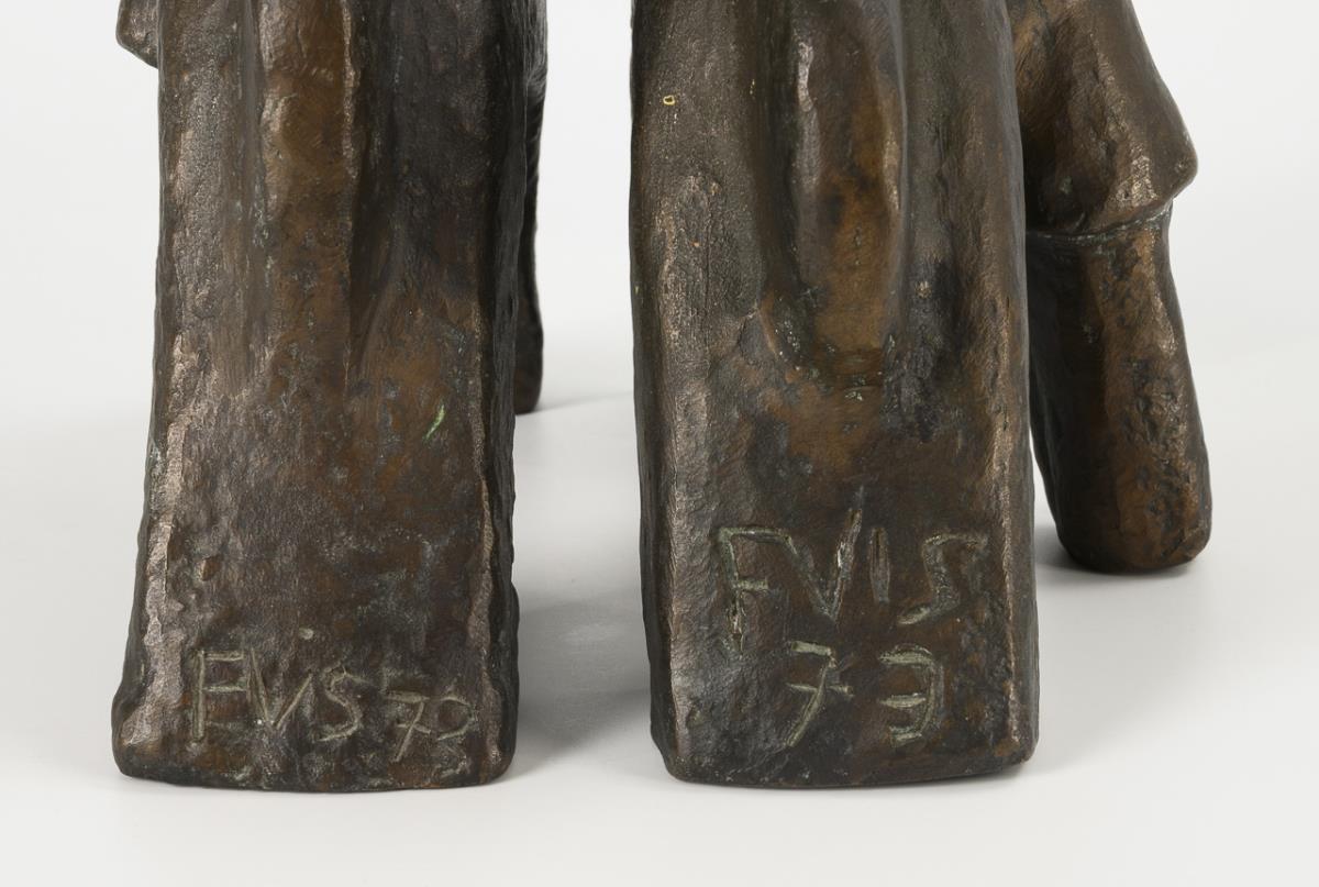 Bronze patinated. Each inscribed/dated with monogram "FVIS" and "FVS": (19) "73". H 24 and 21 cm respectively, L 25 and 24 cm respectively. Together 8.2 kg.