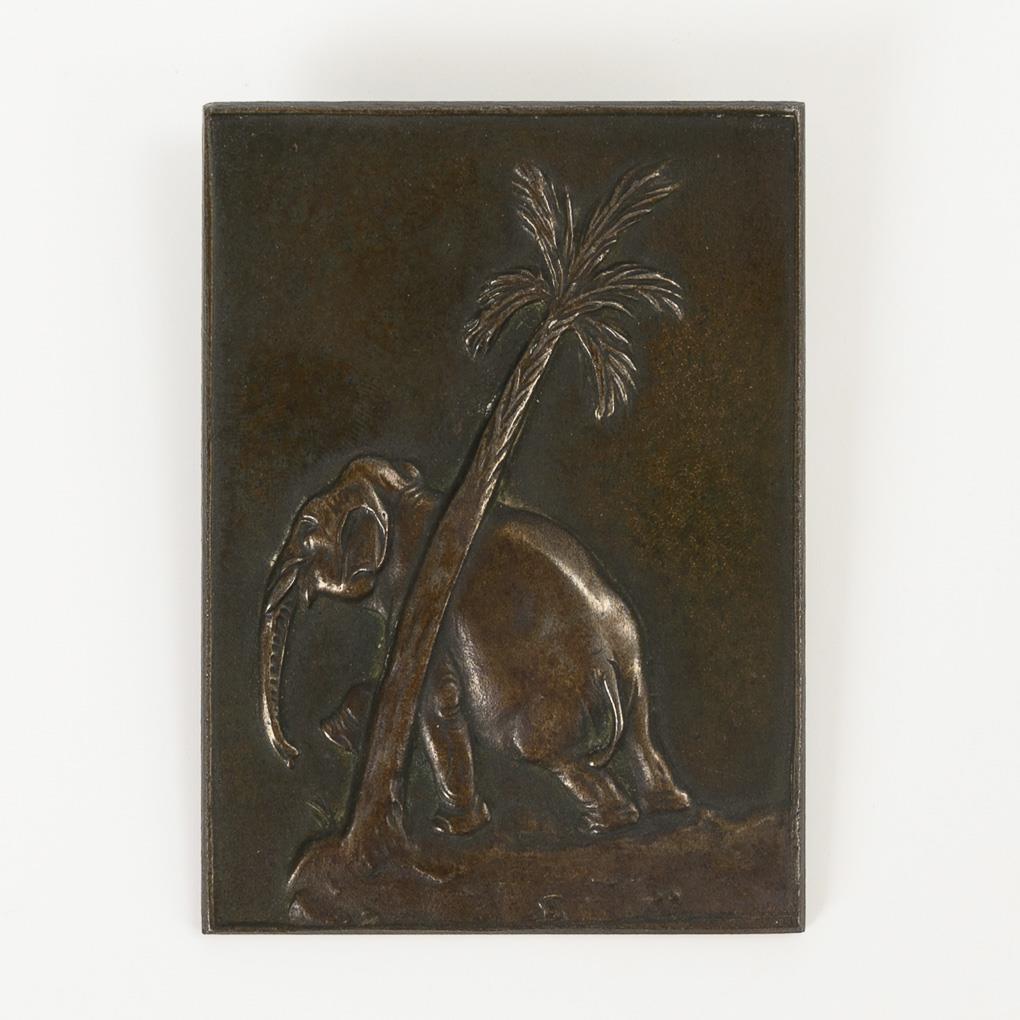 Cast iron with bronze patina, hanging loop on the reverse. 1930s. Monogram "SB"(?) on the front, foundry mark Lauchhammer on the reverse. 8.2 x 6.0 cm.