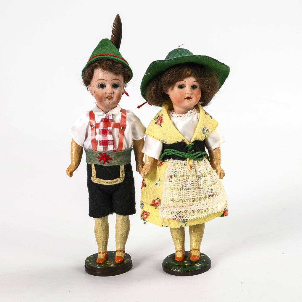 2 small dolls in traditional costume.