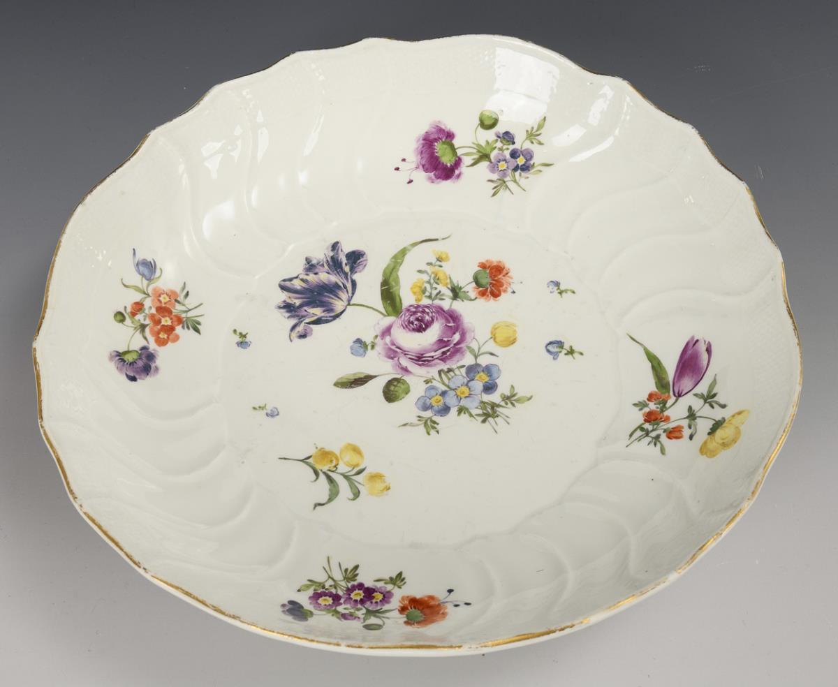 1 bowl, shape "Neuozier" (Ø 25 cm), 1 plate with narcissus in a mirror (Ø 27 cm), 1 plate "Rote Rose" (Ø 24 cm), 3 plates shape "Neuer Ausschnitt" (Ø 17.5 cm) and 1 plate with blue painting (Ø 24 cm).