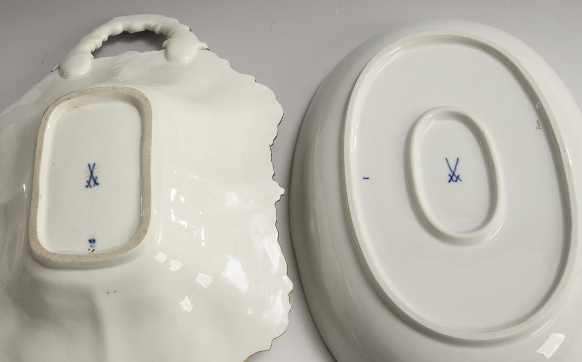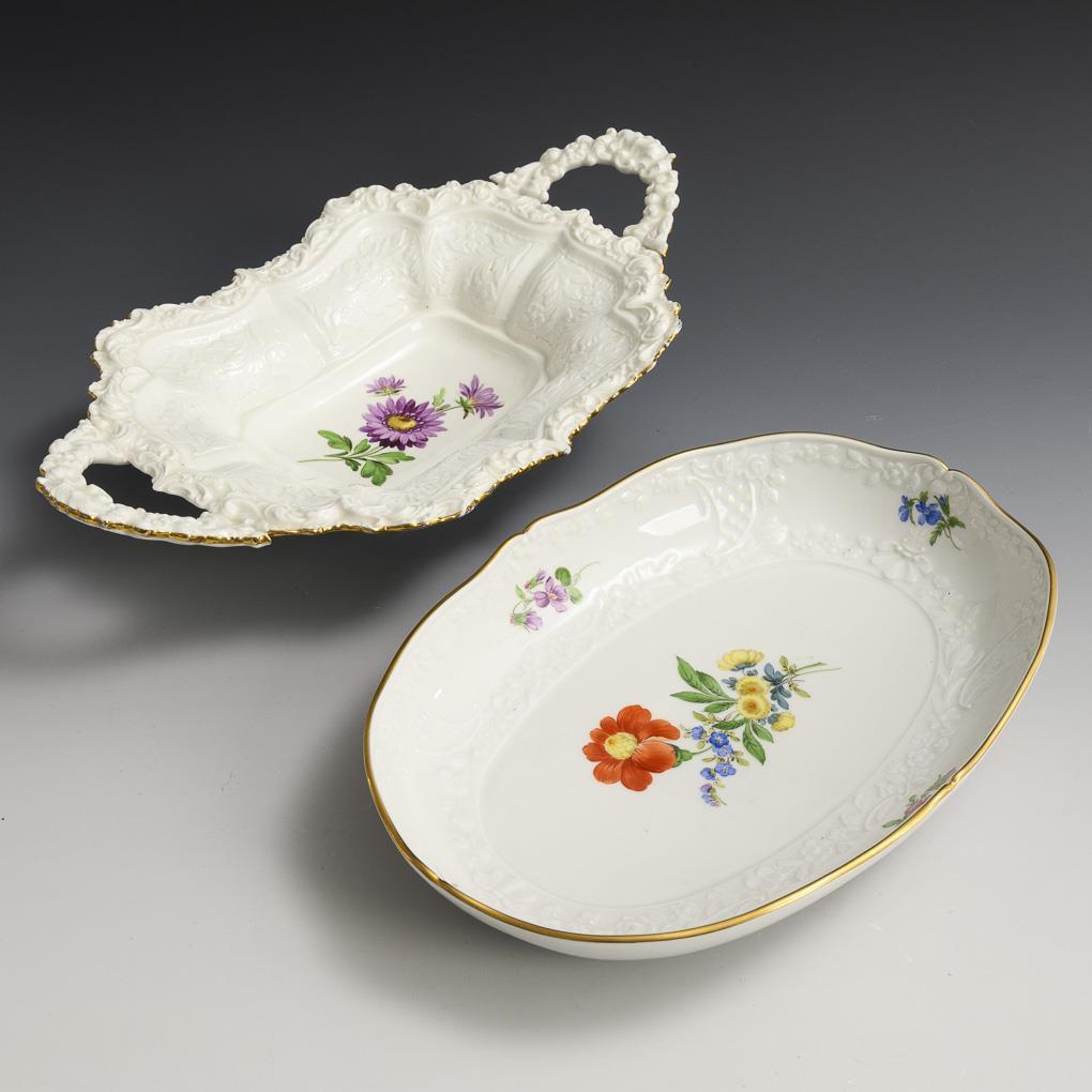 Handled bowl and oval bowl with flower painting. Meissen.