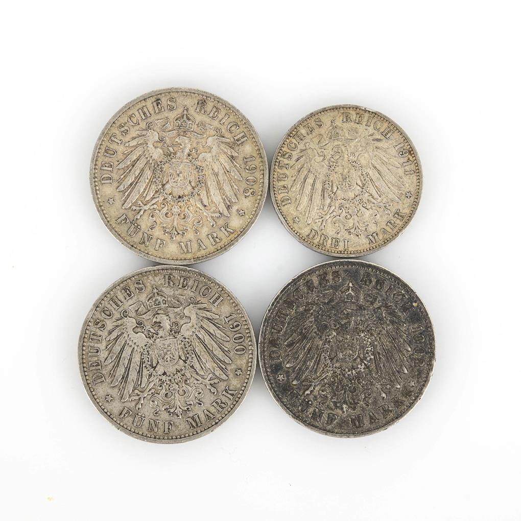5 Mark 1900, "Albert Koenig von Sachsen". / 5 Mark 1903, "Georg Koenig von Sachsen". / 5 marks 1908, "Friedrich August Koenig von Sachsen". / 3 Mark 1911, "Friedrich August König v. Sachsen". Condition: very nice.
