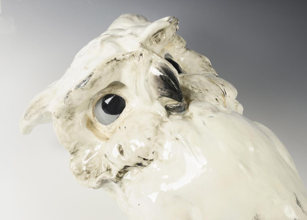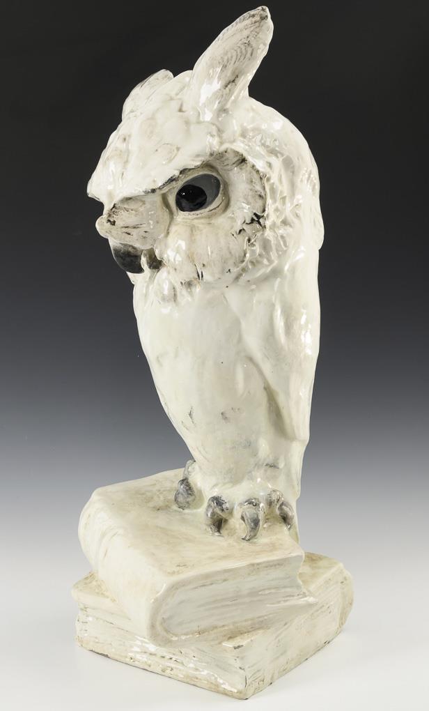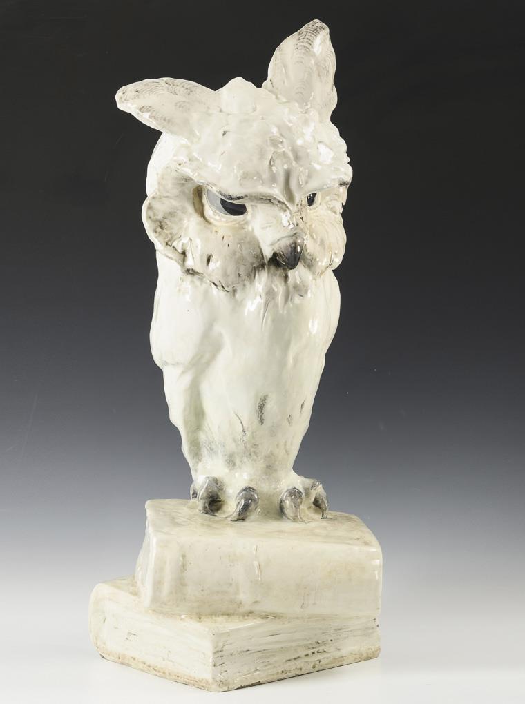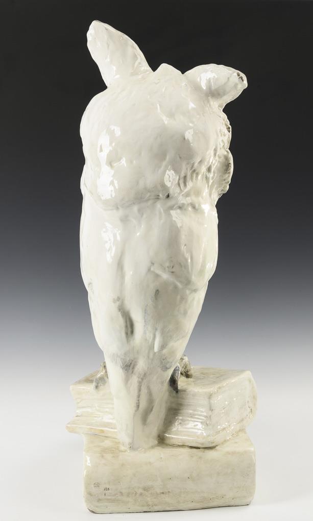 Exceptionally large eagle owl on stack of books. A. Förster & Co, Vienna.