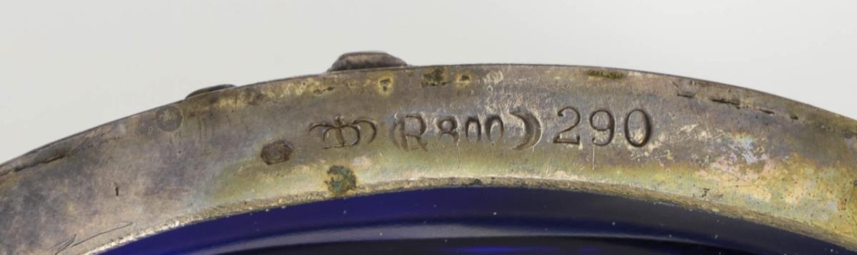Various salvers with glass inserts, Empire style to Art Nouveau. Signs of age, repairs, glass partly with small chips.