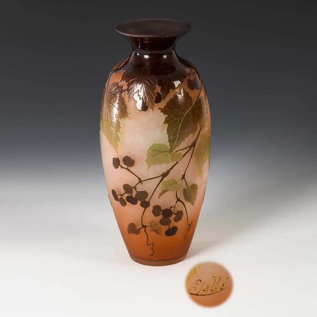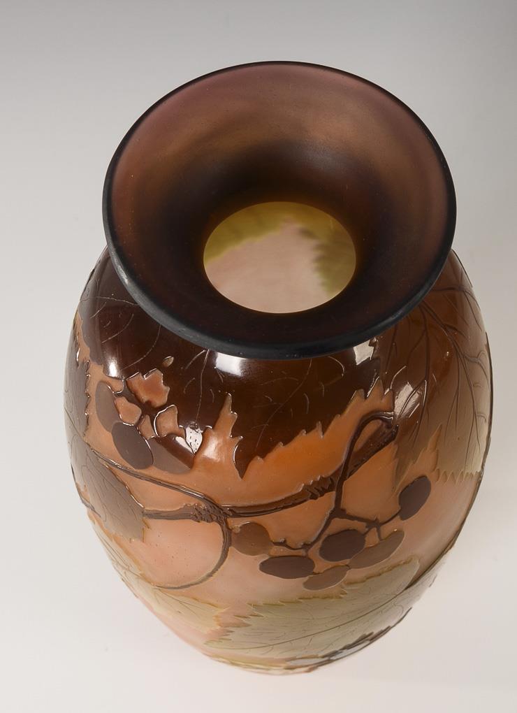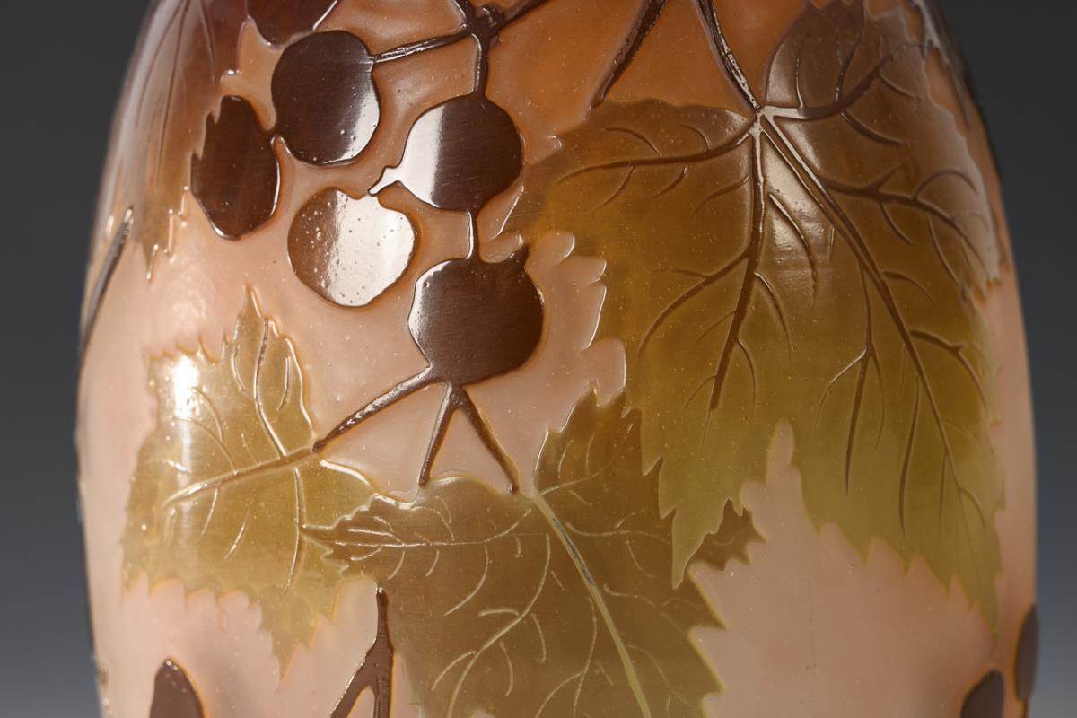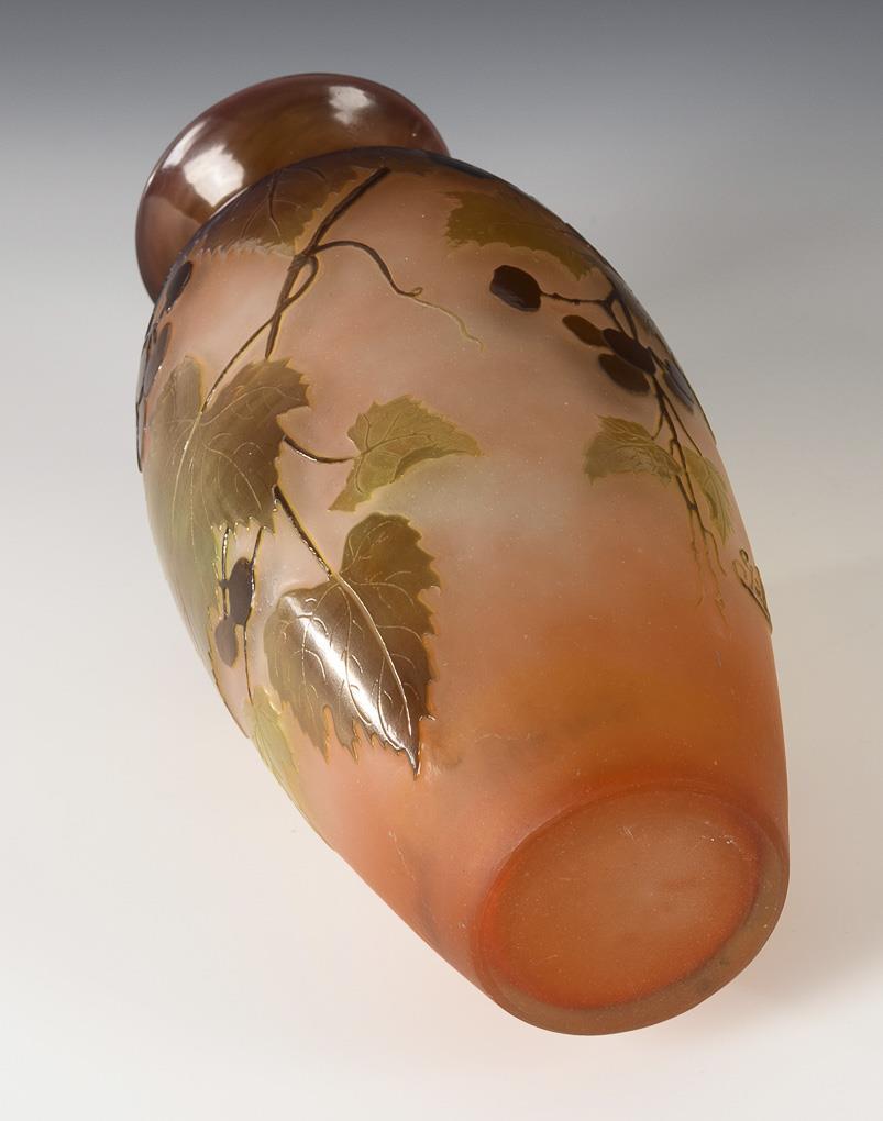Art Nouveau vase with wine decoration. Gallé.