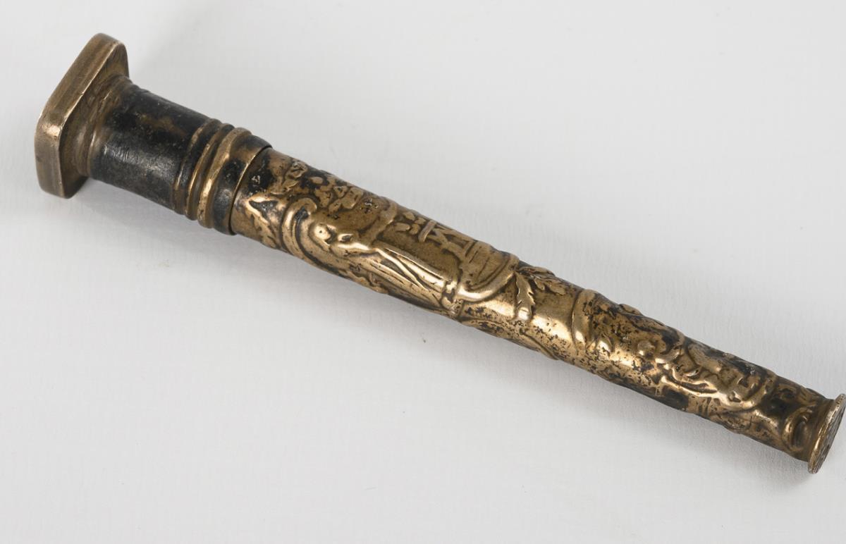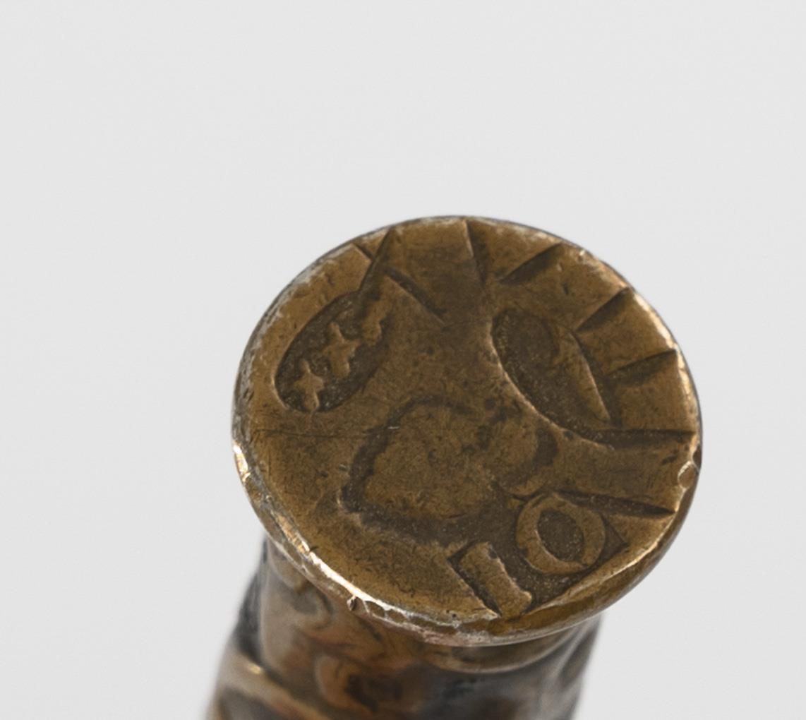 Silver hallmarked 10/XXX for Amsterdam and other indistinct hallmarks as well as Austrian import stamp (1901-21) on the typar. Silver shaft around 1800, otherwise mostly 19th century