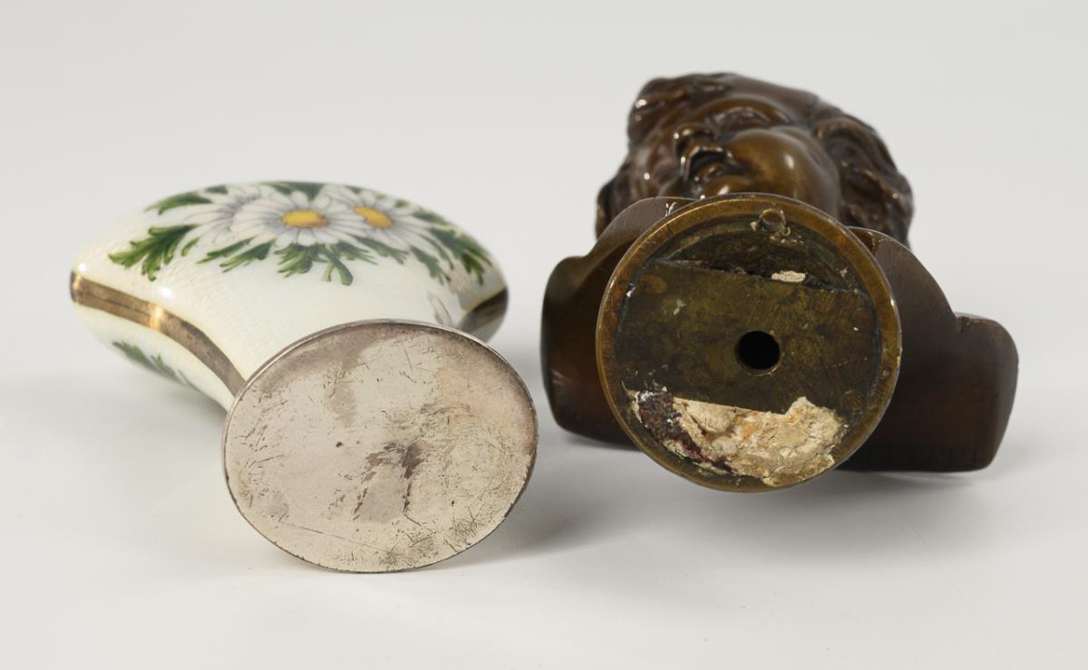 Silver putti painted with daisies on both sides with empty typar; made by Georg Adam Scheid in Vienna (1838-1921). / Bronze child's bust with removed typar.
