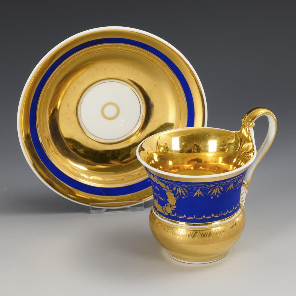 Cup (h 10.5 cm), original saucer (Ø 14.5 cm).