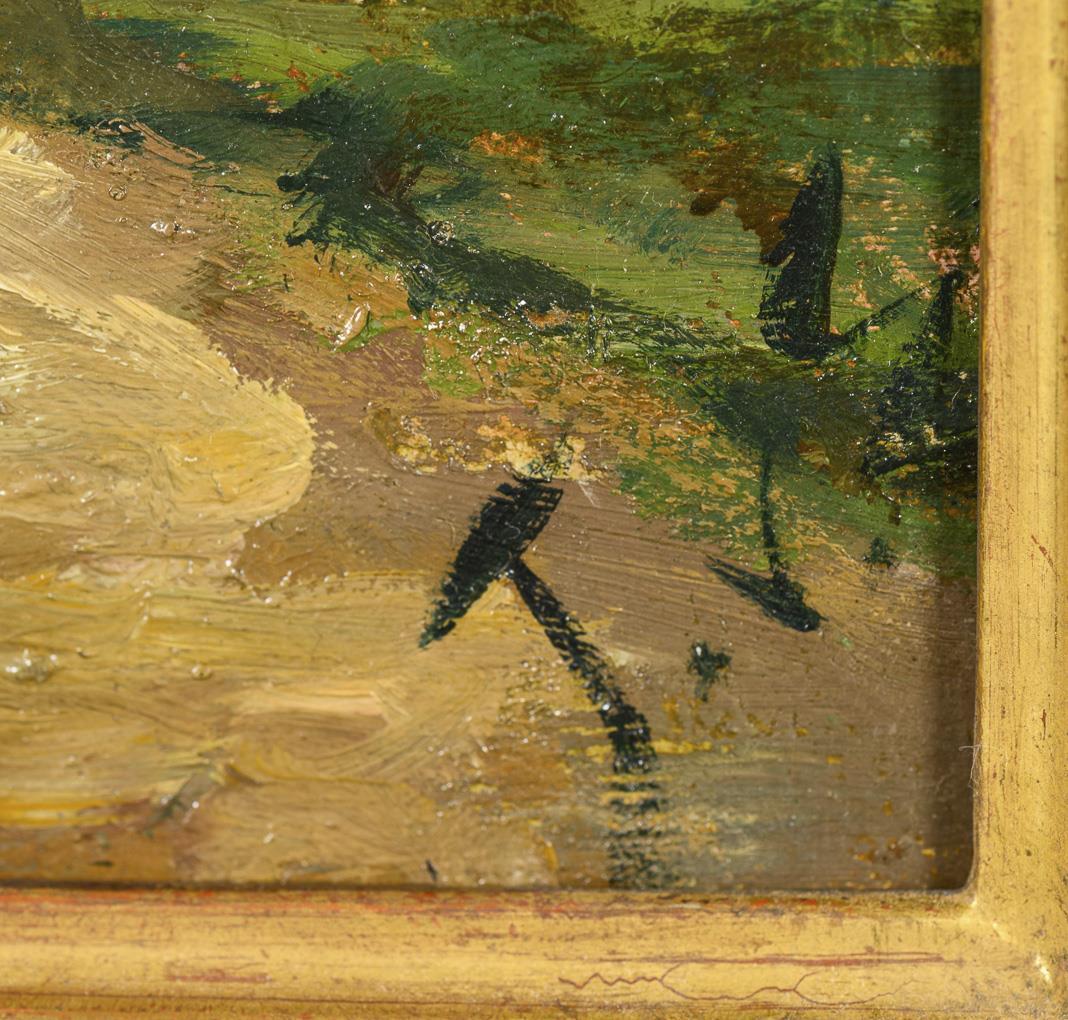 Oil/painting card. Monogrammed lower right, monogrammed/titled on verso. Aug. 1902.