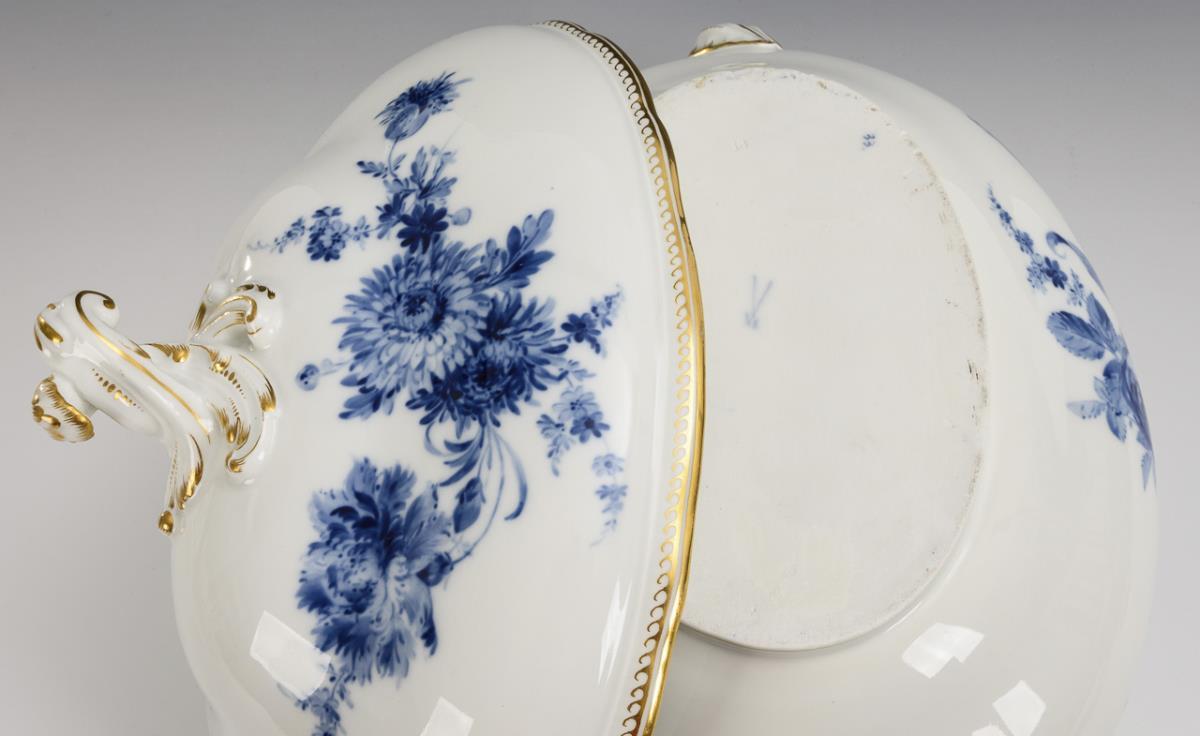 Unglazed blue flower painting, gold staffage. L 37.5 cm.