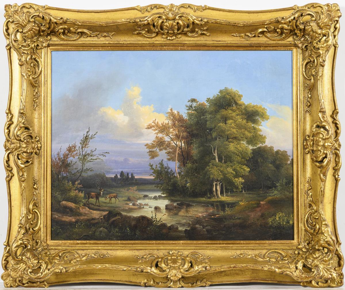Landscape with stag and deer