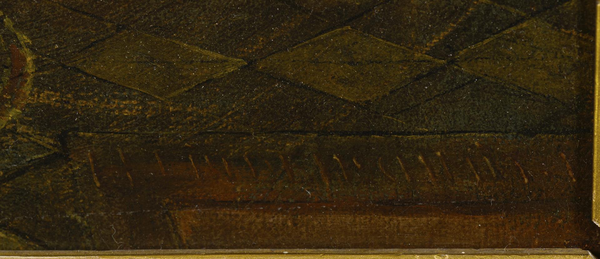 46 x 37 cm. Framed : 71 x 62.5 cm (gold stucco frame); 5 kg.