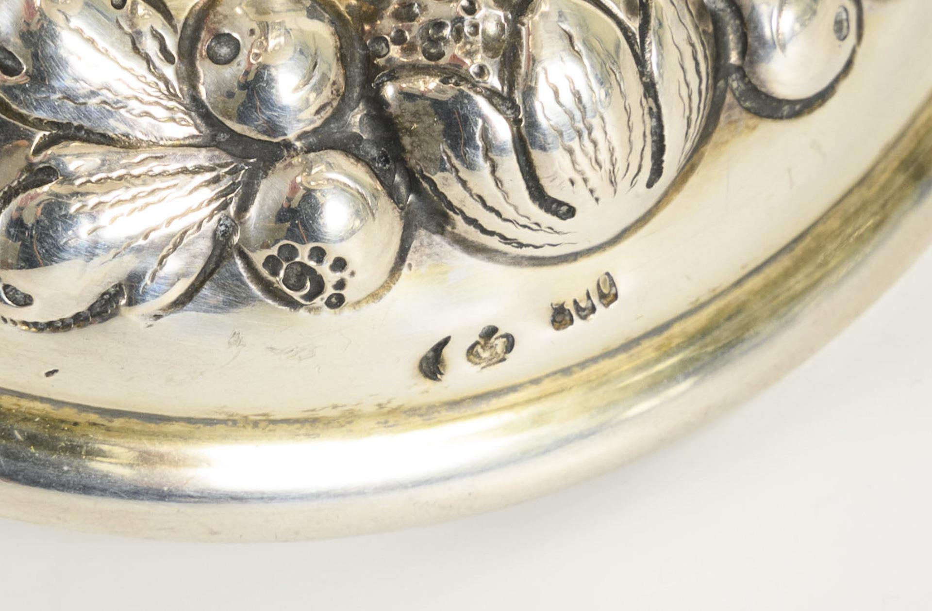 Silver goblet with fruit reliefs.